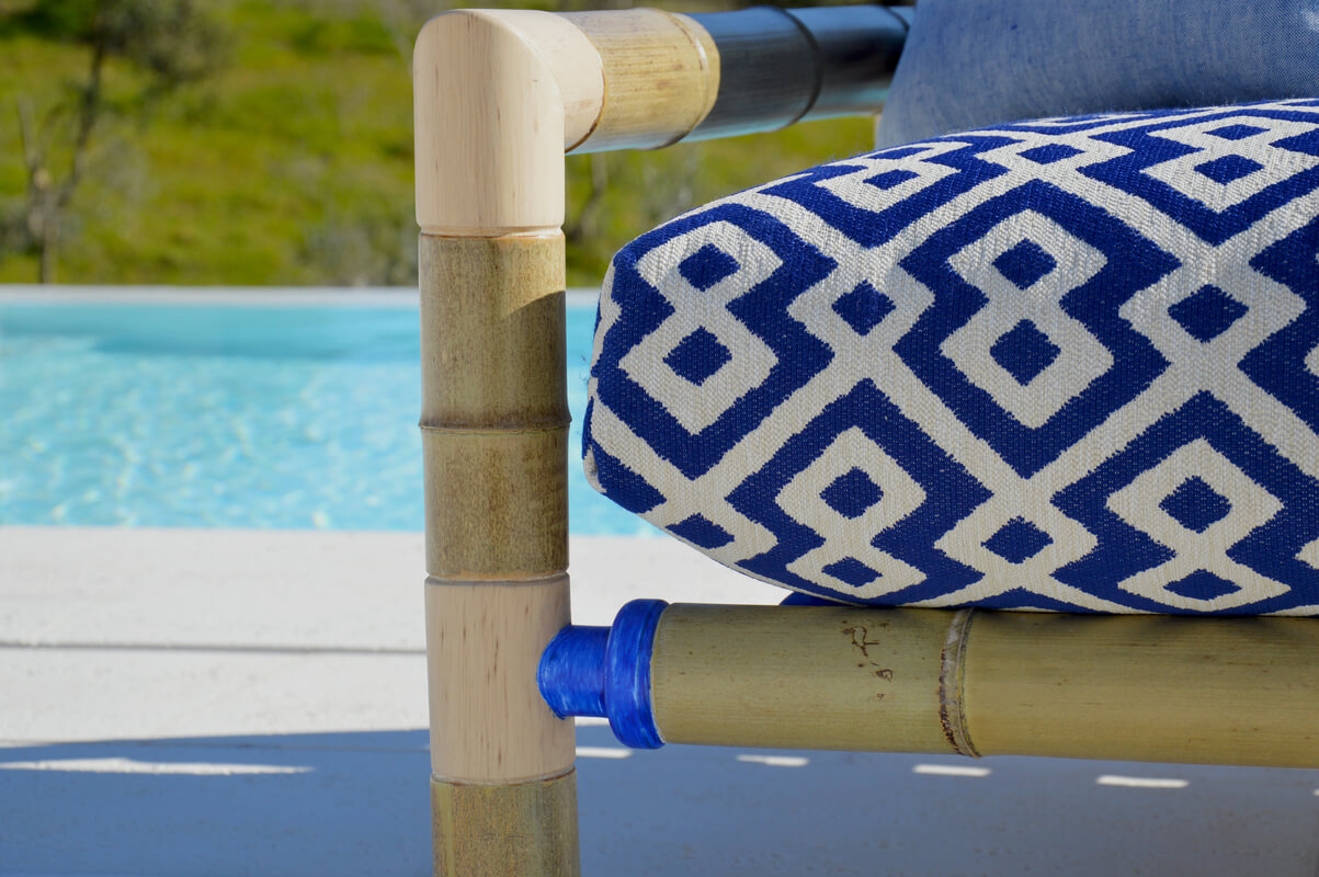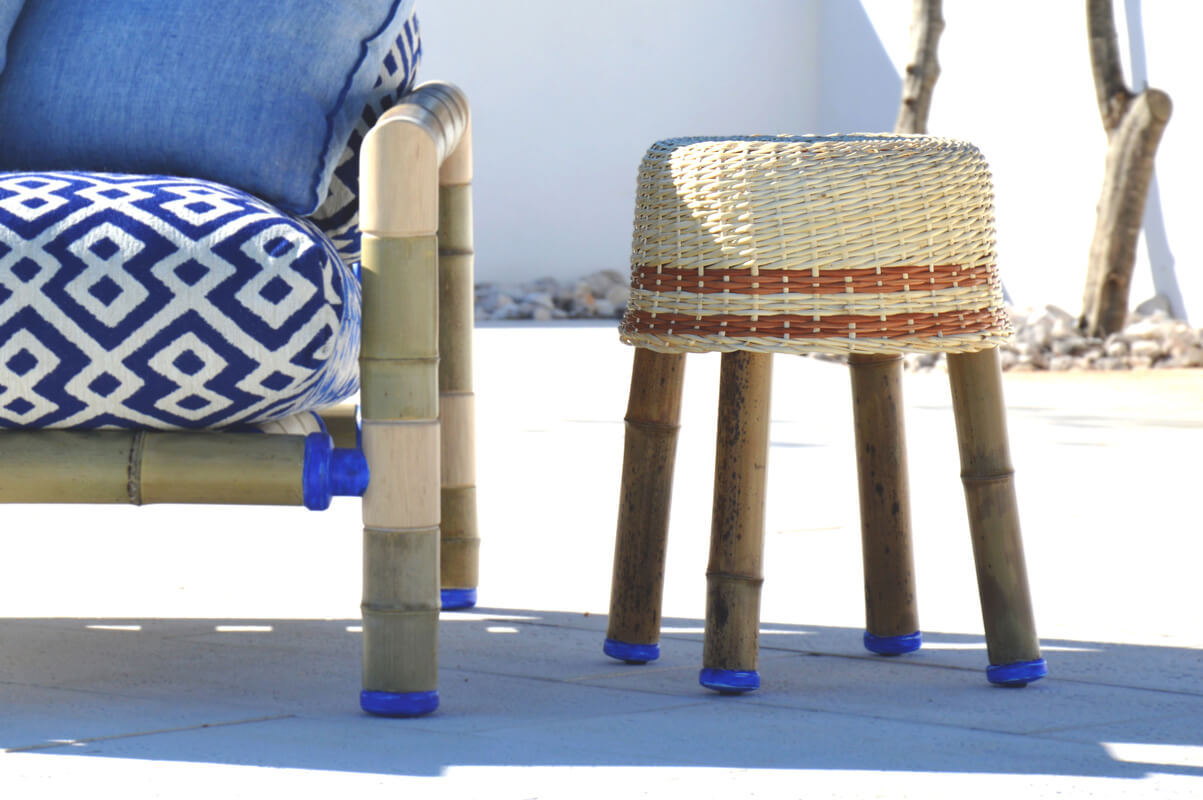 Bambu Natural com uniões e pés em madeira com tratamento de pigmentos naturais.